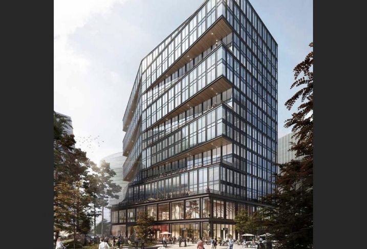Courtesy of the BPDA/Gensler. Rendering of Amazon’s future Seaport office at 111 Harbor Way, which is part of Boston’s 9M SF office and lab construction pipeline.